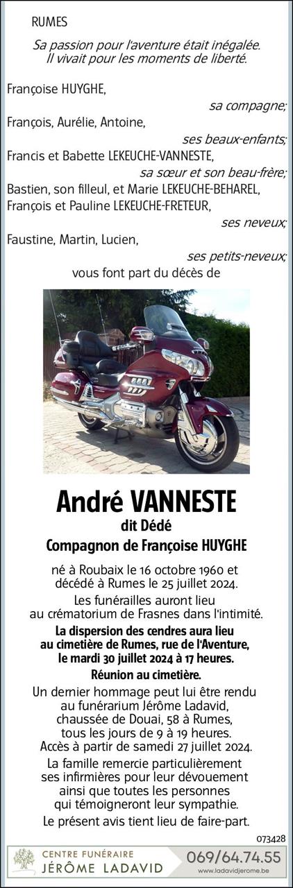 Décédé à Rumes (7610) le jeudi 25 juillet 2024 à l'âge de 63 ans