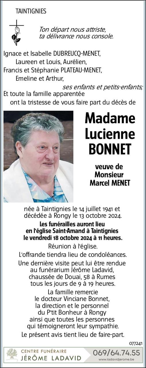 Décédée à Rongy (7623) le dimanche 13 octobre 2024 à l'âge de 83 ans