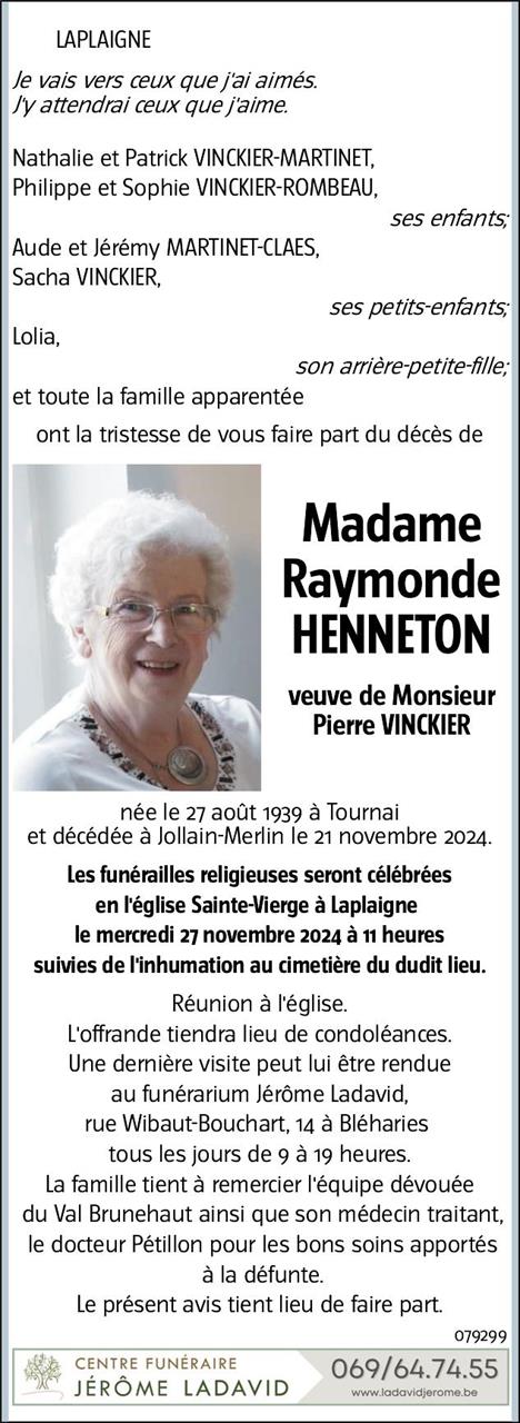 Décédée à Jollain-Merlin (7620) le jeudi 21 novembre 2024 à l'âge de 85 ans
