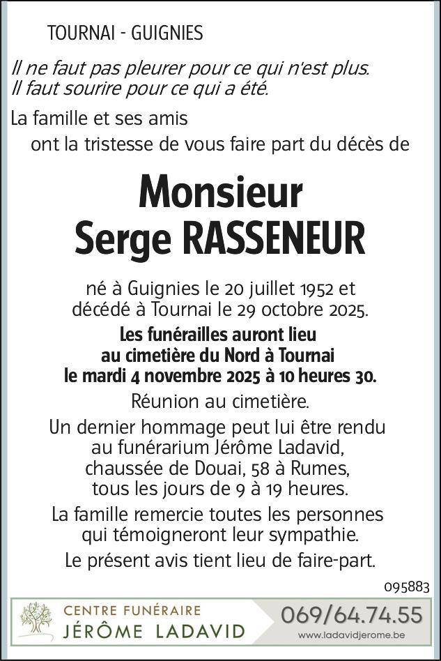 Décédé à Tournai (7500) le mercredi 29 octobre 2025 à l'âge de 73 ans