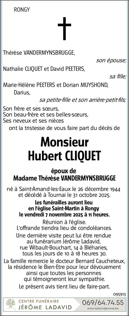 Décédé à Tournai (7500) le vendredi 31 octobre 2025 à l'âge de 80 ans