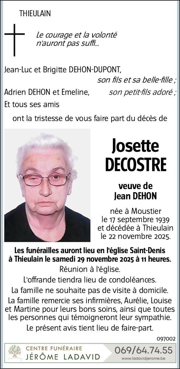Décédée à Thieulain (7901) le samedi 22 novembre 2025 à l'âge de 86 ans