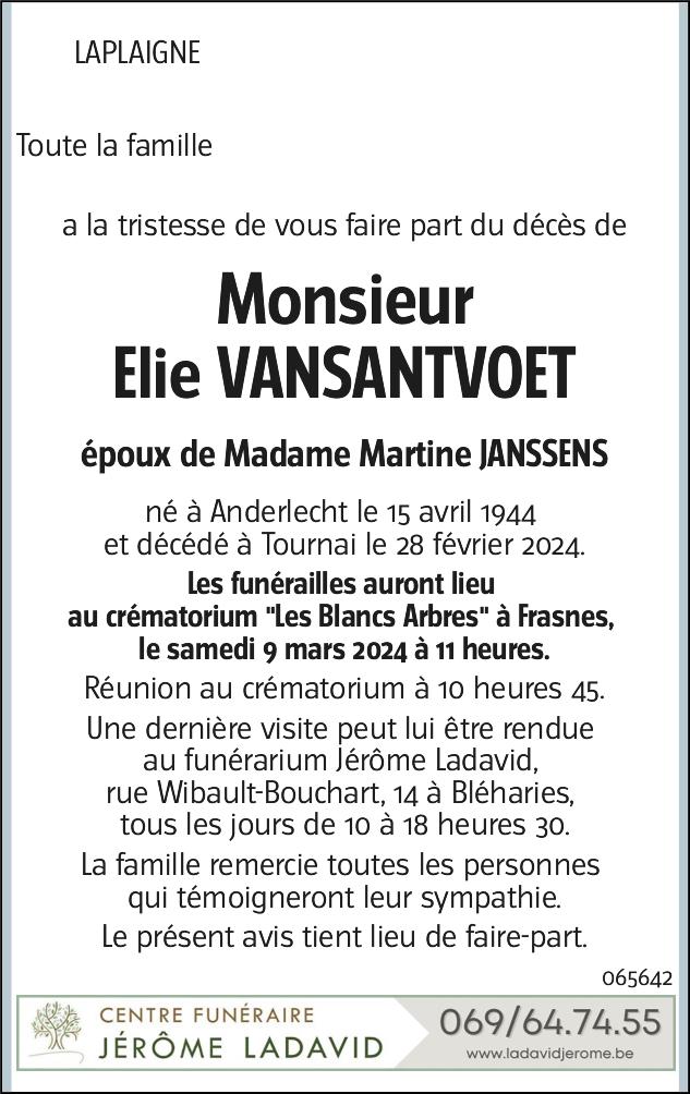 Décédé à Tournai (7500) le mercredi 28 février 2024 à l'âge de 79 ans