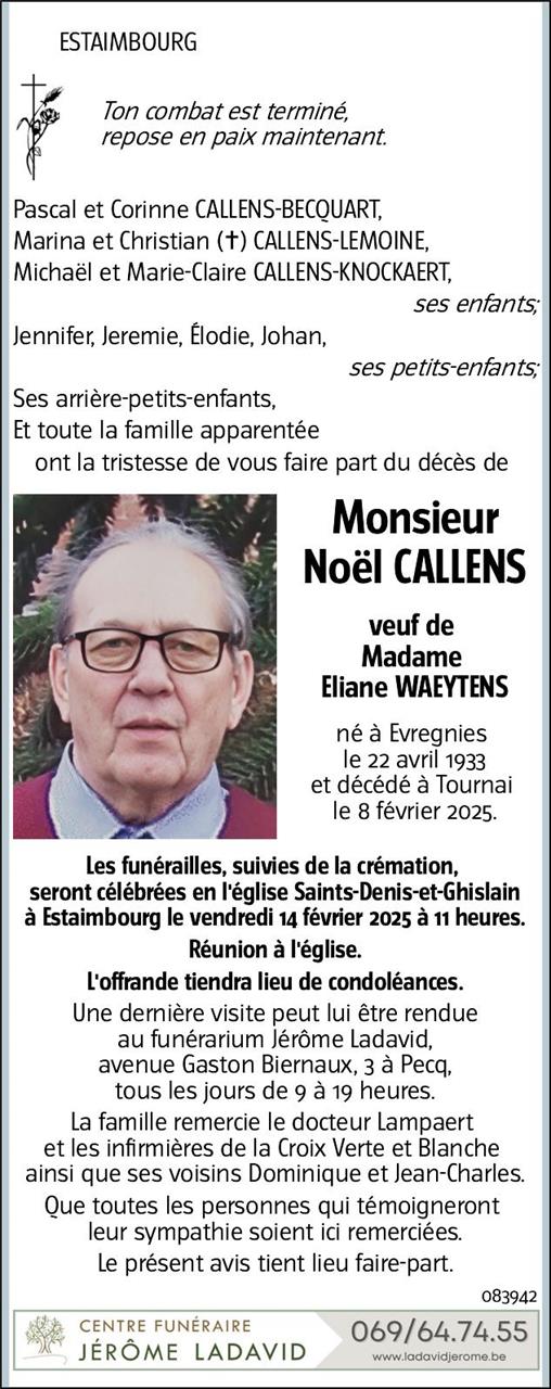 Décédé à Tournai (7500) le samedi 8 février 2025 à l'âge de 91 ans