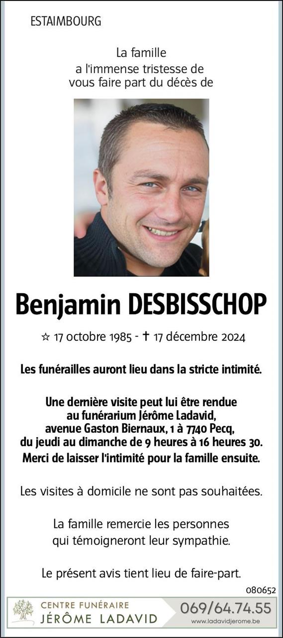 Décédé à Helkijn (8587) le mardi 17 décembre 2024 à l'âge de 39 ans