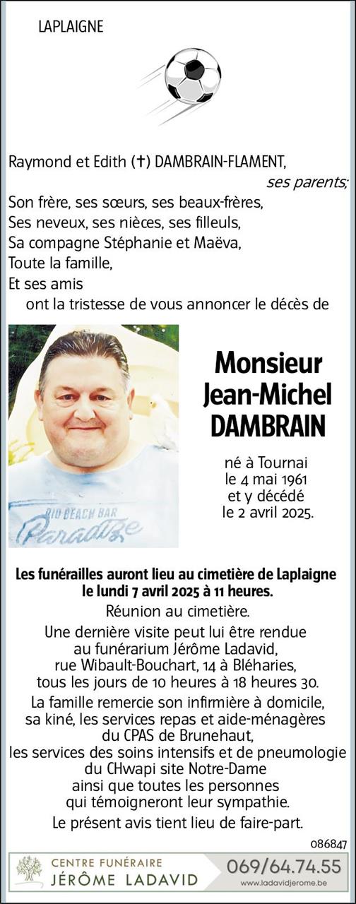 Décédé à Tournai (7500) le mercredi 2 avril 2025 à l'âge de 63 ans
