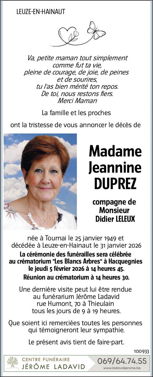 Madame Jeannine DUPREZ