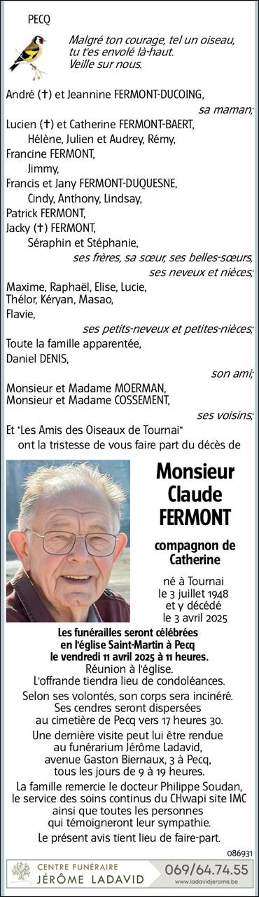 Décédé à Tournai (7500) le jeudi 3 avril 2025 à l'âge de 76 ans